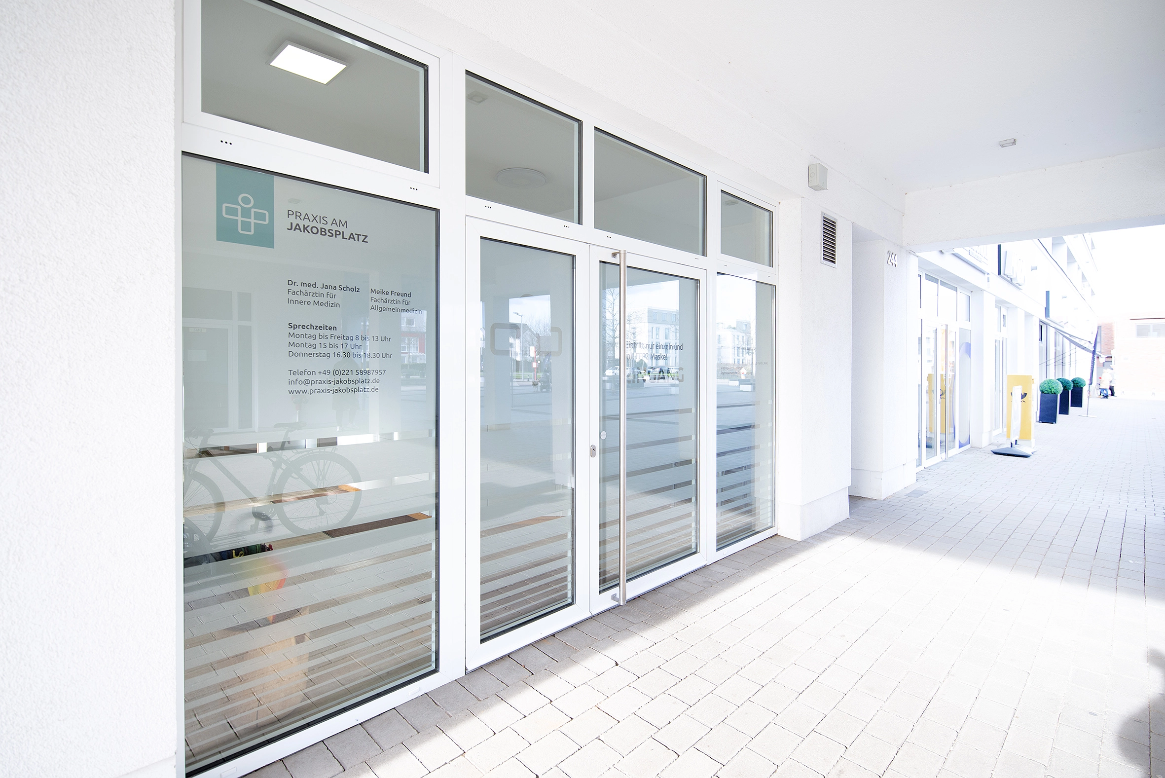 Unsere hellen und freundlichen Räumlichkeiten in Köln-Widdersdorf sind mit öffentlichen Verkehrsmitteln wie auch mit dem PKW gut zu erreichen. Außen- sowie Tiefgaragenstellplätze stehen Ihnen als Patient zur Verfügung. Zudem sind alle Räume komplett ebenerdig – es gibt nicht eine einzige Stufe – und somit barrierefrei.